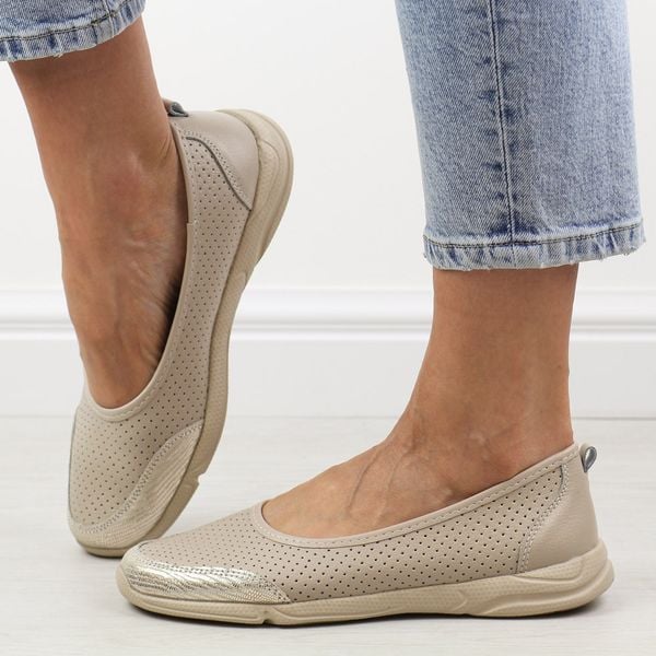 Beżowe lekkie skórzane baleriny damskie Jezzi 3621
