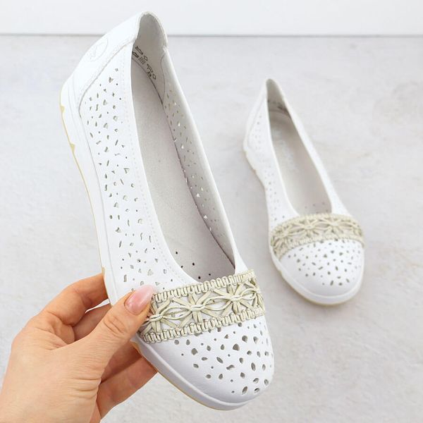 Baleriny damskie ażurowe komfortowe białe Rieker L3062-80