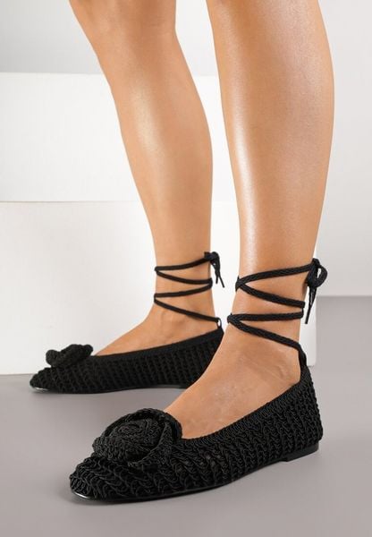 Czarne Plecione Balerinki Vices z Aplikacją i Wiązaniem Erlemia