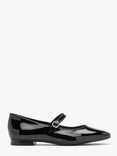 Czarne lakierowane baleriny z ozdobnym zapięciem