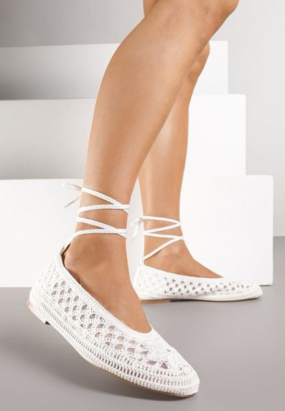 Białe Balerinki Vices z Szydełkową Cholewką i Wiązaniem Wokół Kostki Ernelia