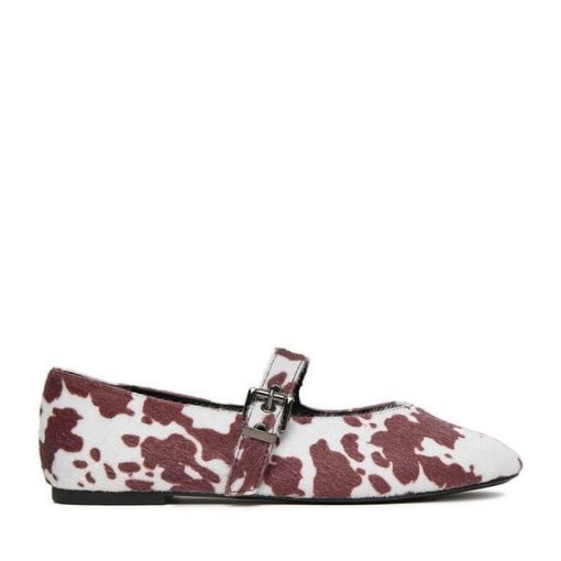 Brązowe Czółenka Balerinki Vices w Krowie Łaty ze Szpiczastym Noskiem i Skórzaną Wkładką Falavesa