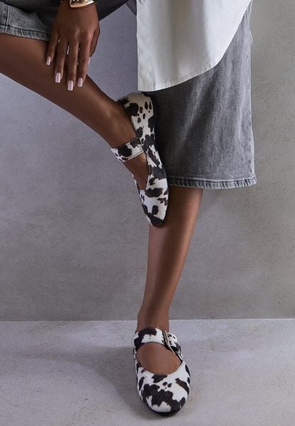 Brązowo-Białe Balerinki Vices w Krowie Łaty w Stylu Mary Jane ze Skórzaną Wkładką Nalievre