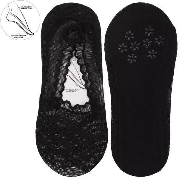 Baleriny damskie Moraj, skarpetki niskie bawełniane antypoślizgowe z koronką, czarne, CDB250-002
