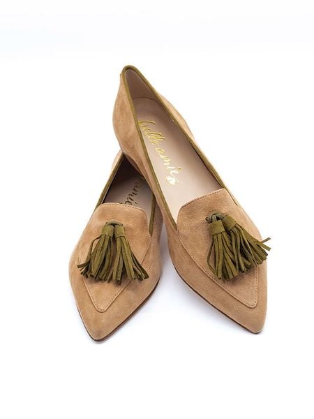 – skóra welurowa- zapięcie: bez- noski: w szpic – detale: na nosku ozdobne chwostki- skórzana wkładka: tak- podeszwa: antypoślizgowa