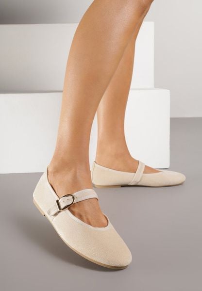 Beżowe Balerinki Mary Jane z Klamrą Zaurg