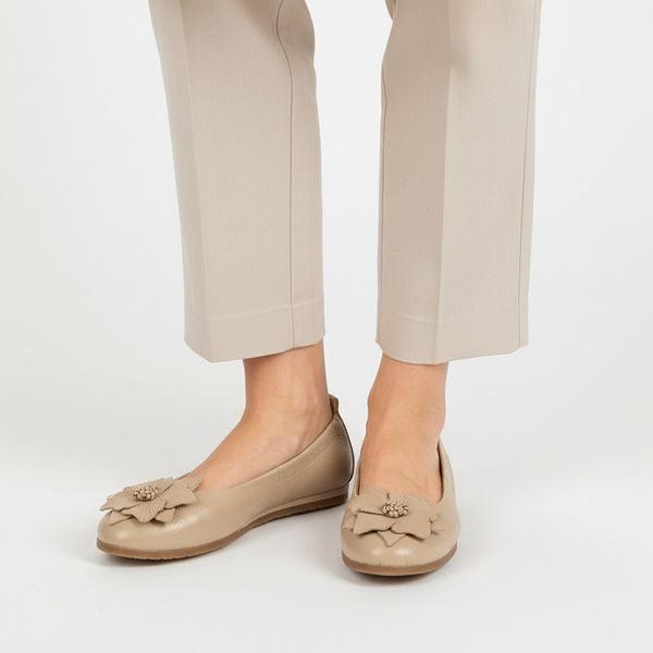 Baleriny damskie Armodo, cholewka ze skóry naturalnej z dekoracyjną aplikacją na przodzie elastyczna konstrukcja ułatwiająca zakładanie oraz płaska p