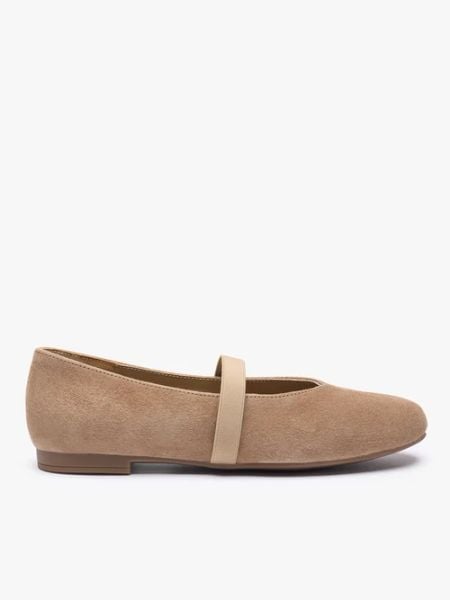Jasnobrązowe welurowe baleriny z paskiem