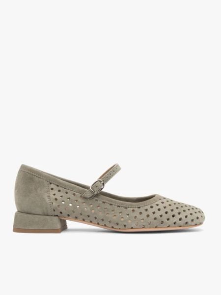 Oliwkowe ażurowe baleriny