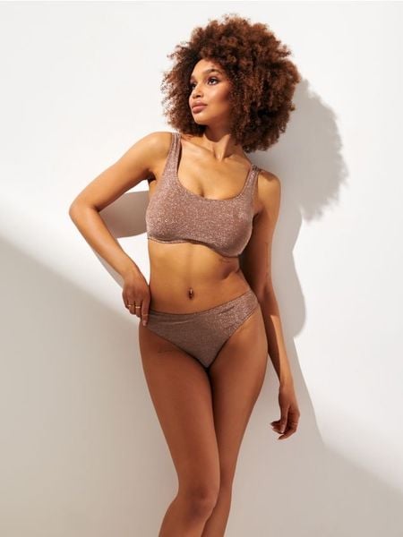 Sinsay – Dół od bikini – brązowy – metaliczny połysk,klasyczny krój