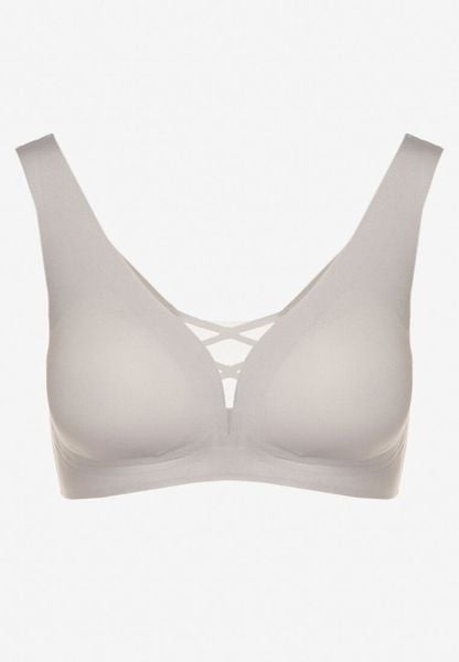 Szary Biustonosz Sportowy z Siateczką i Gorsetowym Zdobieniem Saliatessa
