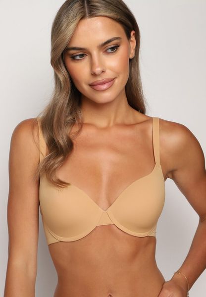 Ciemnobeżowy Gładki Biustonosz z Regulowanymi Ramiączkami Devisea