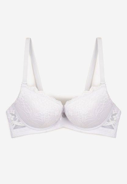 Biały Biustonosz Push Up Ozdobiony Koronką Sannel