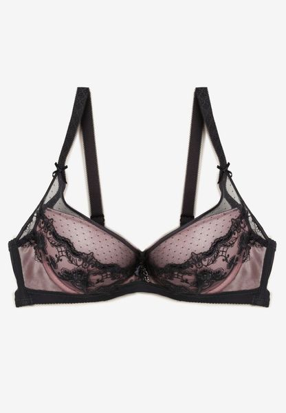 Biustonosz Maddea z wypełnieniem push up, dekorowany efektowną koronką. Na regulowanych ramiączkach. Tył z zapięciem na haftki.