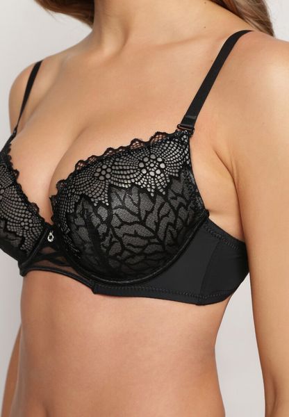 Czarno-Beżowy Biustonosz Push Up z Ozdobną Koronką i Zawieszką Gialine