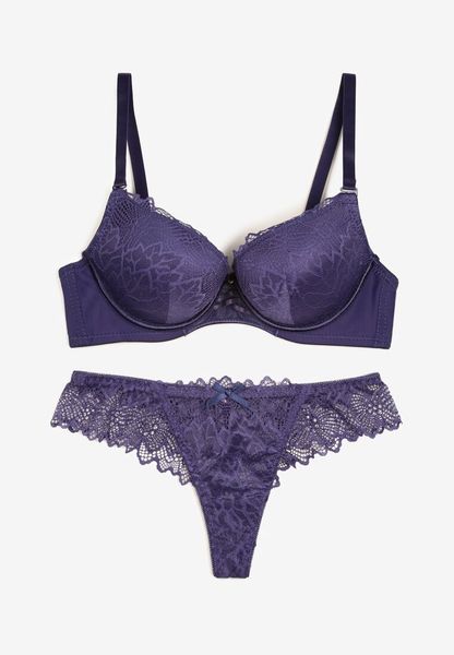 Fioletowy Komplet Biustonosz Push Up i Majtki Ozdobione Romantyczną Koronką Zeril