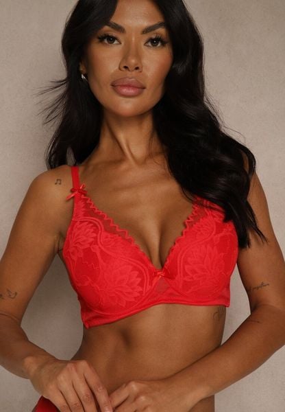 Czerwony Biustonosz Zdobiony Koronką i Kokardami Morgavia