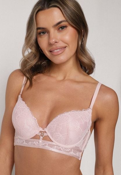 Różowy Klasyczny Biustonosz Zdobiony Koronką i Aplikacją Metheis
