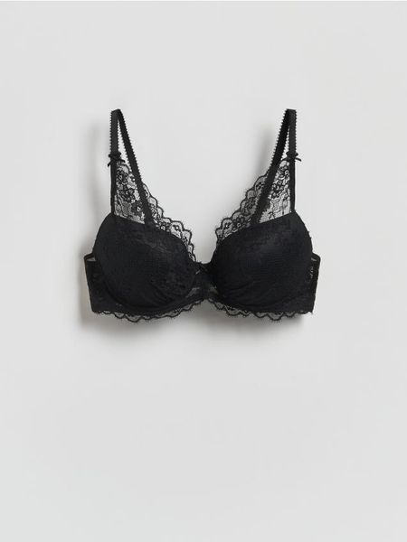 Koronkowy biustonosz push up – czarny