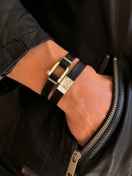 Uomo Skórzana bransoletka w kolorze czarnym rozmiar: L