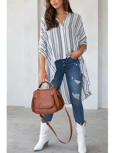 – kołnierz: kent- dekolt: V- zapięcie: listwa guzikowa- dolny brzeg: asymetryczny- krój: dłuższe plecy- wzór: paskiUwaga: Podczas wybierania odpowiedniego rozmiaru należy kierować się tabelą, widoczną na ostatnim zdjęciu.