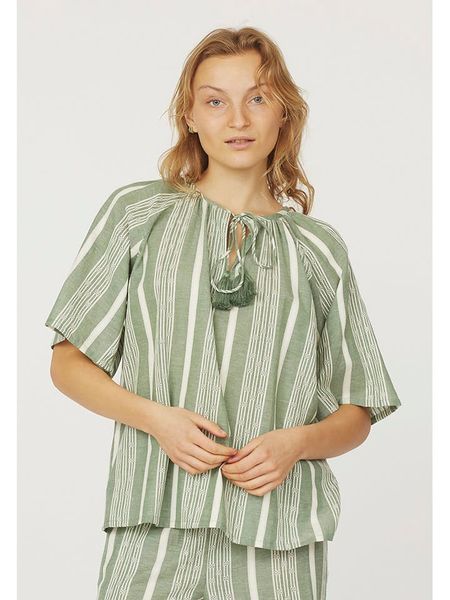 – czysta bawełna- dekolt: z rozcięciem- detale: ozdobne wiązanie- krój: luźny- wzór: paski