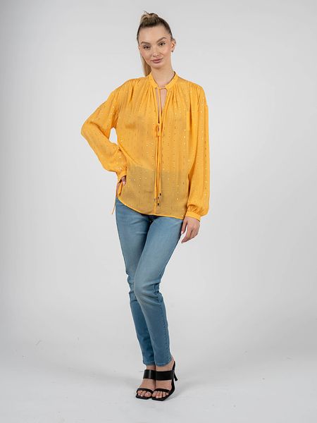 Prosty fasonTransparentnaZe wzorem z metaliczną niciąGłęboki dekolt w kształcie litery VWycięcie ozdobione sygnowanym wiązaniemDługie rękawyRękawy zakończone mankietami z wiązaniemPo bokach rozcięciaWykonana z wysokiej jakości tkaniny