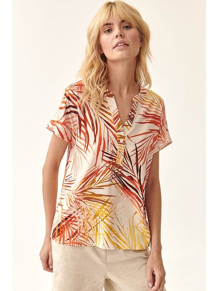 – zrównoważony rozwój: w 100% z wiskozy LENZING™ ECOVERO™- dekolt: V- zapięcie: skrócona listwa guzikowa- krój: prosty- wzór: graficznyWłókna wiskozowe LENZING™ ECOVERO™ wchodzące w skład tego produktu spełniają wysokie standardy ekologiczne oznakowania ekologicznego UE. Pochodzą one ze zrównoważonych, certyfikowanych źródeł drewna. Przy produkcji włókna celulozowe są pozyskiwane z masy drzewnej i przetwarzane na włókno wiskozowe […]