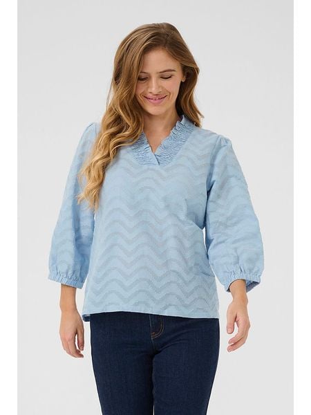 – czysta bawełna- kołnierz: stójka- dekolt: V- rękaw: bufiasty- zakończenie rękawów: elastyczne- długość rękawa: 3/4- krój: luźny- look: jednokolorowy