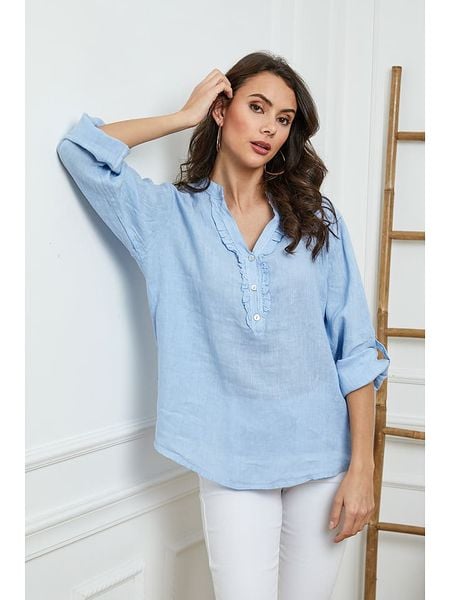 – czysty len- dekolt: z rozcięciem- zakończenie rękawów: patka i guzik- detale: ozdobne guziki- krój: prosty- look: jednokolorowy