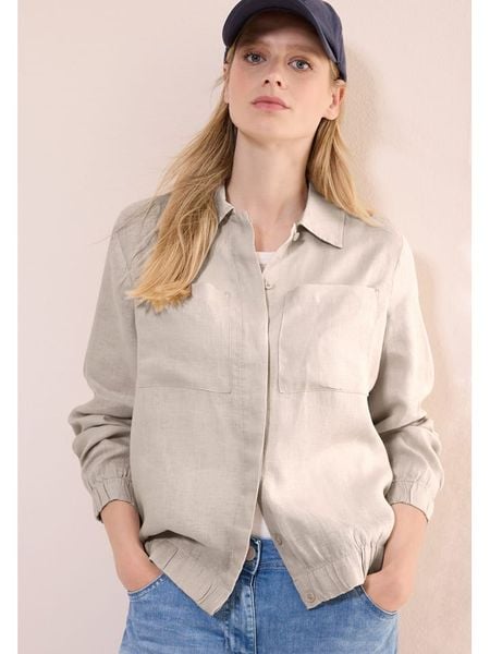 – czysty len- kołnierz: kent- zapięcie: listwa guzikowa- zakończenie rękawów: elastyczne- kieszenie: na piersi- dolny brzeg: elastyczny- krój: prosty- look: jednokolorowy