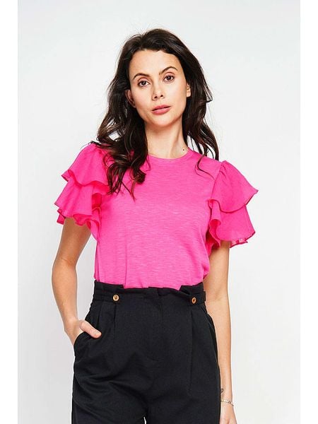 – dekolt: okrągły- krój rękawów: motylek- krój: wąski- wzór: melanżowyWskazówka: Na metkach odzieży tej marki znajdują się rozmiary francuskie. Rozmiarówka została przez nas przeliczona. Podane do wyboru warianty rozmiarów odpowiadają standardowym europejskim rozmiarom konfekcji. Prosimy zapoznać się z zamieszczonym objaśnieniem rozmiarów: