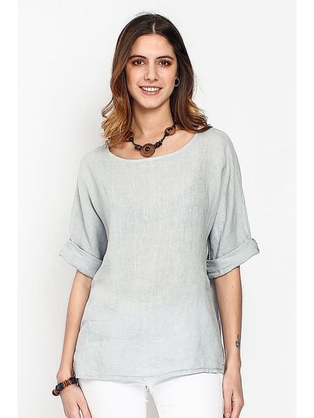– czysty len- dekolt: okrągły – zakończenie rękawa: podwijane- długość rękawa: półdługi- krój: luźny- look: jednokolorowyWskazówka: Na metkach odzieży tej marki znajdują się rozmiary francuskie. Rozmiarówka została przez nas przeliczona. Podane do wyboru warianty rozmiarów odpowiadają standardowym europejskim rozmiarom konfekcji. Prosimy zapoznać się z zamieszczonym objaśnieniem rozmiarów:
