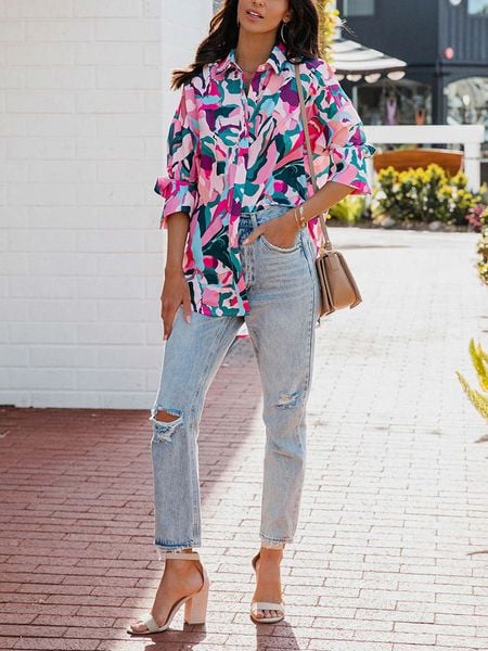 – kołnierz: kent- zapięcie: listwa guzikowa- zakończenie rękawów: guzik- krój: prosty- wzór: na całości