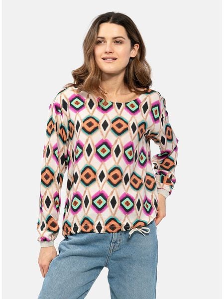 – czysta wiskoza- dekolt: okrągły- ściągacz: zakończenia rękawów- dolny brzeg: ściągacz tunelowy- krój: prosty- wzór: na całości
