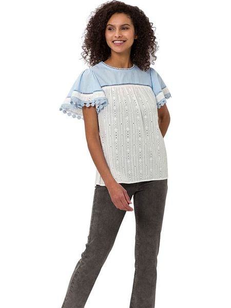 – czysta bawełna- dekolt: okrągły- krój rękawów: motylek- krój: luźny- wzór: dziurkowany- wzór: colour blocking