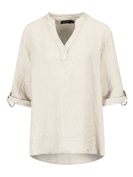 – kołnierz: stójka- dekolt: V- zakończenie rękawów: patka i guzik- krój: prosty- dolny brzeg: zaokrąglony- detale: ozdobna zakładka- look: jednokolorowy