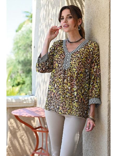 – dekolt: V- zakończenie rękawów: mankiet na guzik- krój: prosty- wzór: na całościWskazówka: Na metkach odzieży tej marki znajdują się rozmiary francuskie. Rozmiarówka została przez nas przeliczona. Podane do wyboru warianty rozmiarów odpowiadają standardowym europejskim rozmiarom konfekcji. Prosimy zapoznać się z zamieszczonym objaśnieniem rozmiarów.