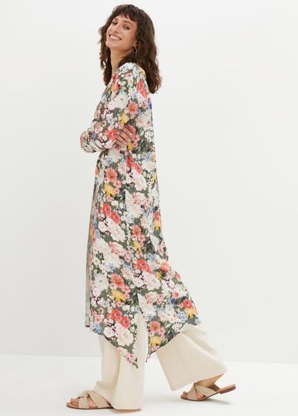 Lekka, bardzo długa bluzka w letni kwiatowy wzór.