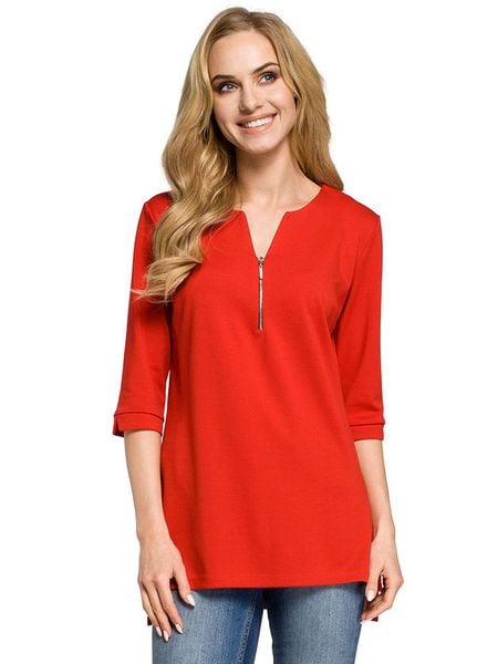 – dekolt: z rozcięciem- zapięcie: skrócony zamek błyskawiczny- długość rękawa: półdługi- krój: prosty- look: jednokolorowy