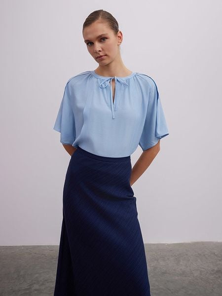 – czysta wiskoza- dekolt: okrągły- krój rękawów: motylek- detale: ozdobne wiązanie- krój: luźny- look: jednokolorowyUwaga: Przy wyborze właściwego wariantu zaleca się korzystanie z tabeli rozmiarów.