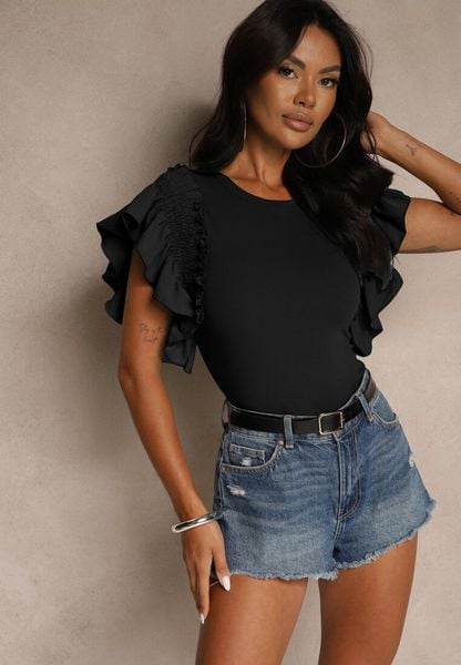 Bluzka Dislie to elegancki, dopasowany do sylwetki fason. Uwagę przykuwa falbanka przy ramionach z marszczonym ściągaczem. Okrągły, płytki dekolt. Wykonana z gładkiej dzianiny z przewagą bawełny w składzie (bawełna 95%). Będzie doskonałym uzupełnieniem stylizacji z błękitnymi jeansami lub letnią spódnicą w kwiaty.