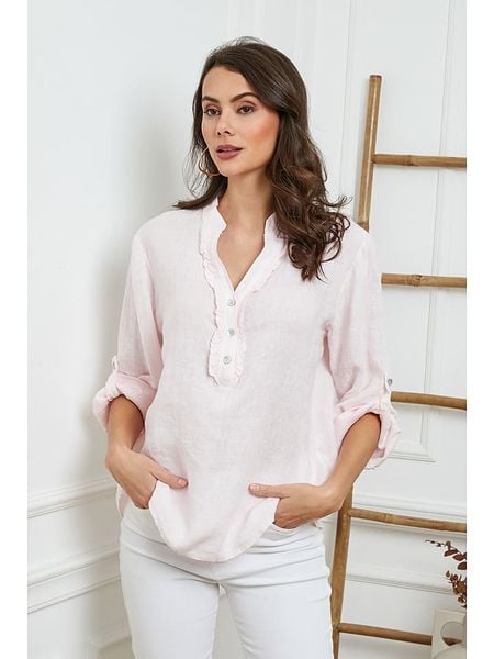– czysty len- dekolt: z rozcięciem- zakończenie rękawów: patka i guzik- detale: ozdobne guziki- krój: prosty- look: jednokolorowy