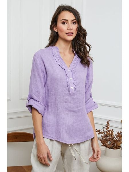 – czysty len- dekolt: z rozcięciem- zakończenie rękawów: patka i guzik- detale: ozdobne guziki- krój: prosty- look: jednokolorowy