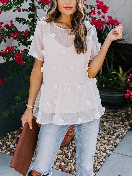 – dekolt: okrągły- zapięcie: guzik na plecach- dolny brzeg: z falbankami- detale: aplikacje- krój: luźny- look: jednokolorowyUwaga: Podczas wybierania odpowiedniego rozmiaru należy kierować się tabelą, widoczną na ostatnim zdjęciu.