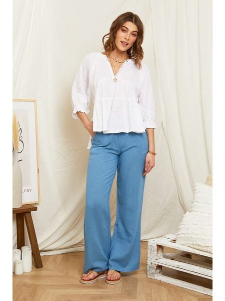 – czysty len- dekolt: V- długość rękawa: 3/4- zakończenie rękawów: elastyczne- krój: luźny- look: jednokolorowy