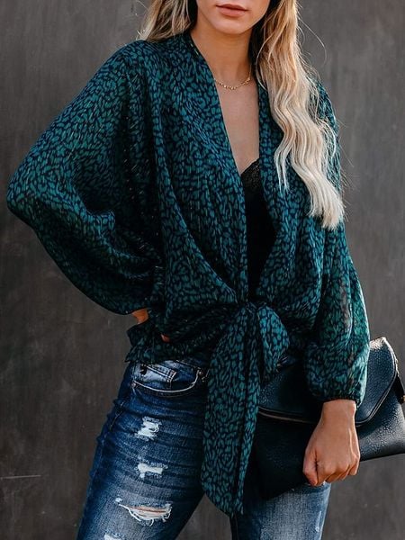 – dekolt: V- rękaw: bufiasty- zakończenie rękawów: elastyczne- dolny brzeg: z supełkami- krój: luźny- wzór: na całościUwaga: Przy wyborze właściwego wariantu zaleca się korzystanie z tabeli rozmiarów.