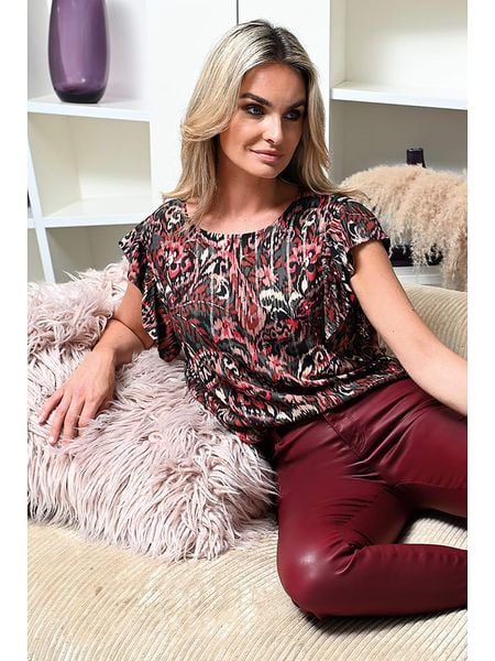 – dekolt: okrągły- krój rękawów: motylek – krój: prosty- wzór: na całościWskazówka: Na metkach odzieży tej marki znajdują się rozmiary francuskie. Rozmiarówka została przez nas przeliczona. Podane do wyboru warianty rozmiarów odpowiadają standardowym europejskim rozmiarom konfekcji. Prosimy zapoznać się z zamieszczonym objaśnieniem rozmiarów: