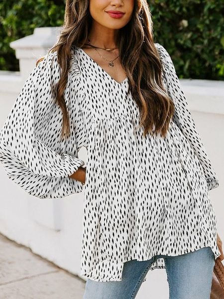 – dekolt: V- rękaw: bufiasty- zakończenie rękawów: elastyczne- długość rękawa: 7/8- krój: oversized- wzór: na całościUwaga: Przy wyborze właściwego wariantu zaleca się korzystanie z tabeli rozmiarów.