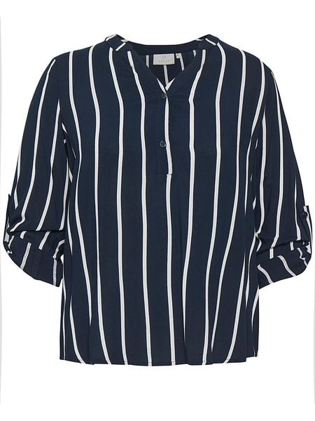 – czysta wiskoza- dekolt: V- zapięcie: skrócona listwa guzikowa- zakończenie rękawów: patka i guzik- krój: luźny- wzór: paskiUwaga: Przy wyborze właściwego wariantu zaleca się korzystanie z tabeli rozmiarów.